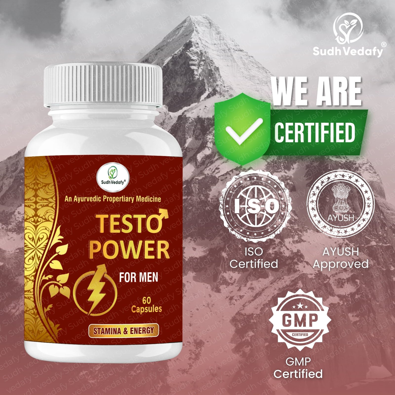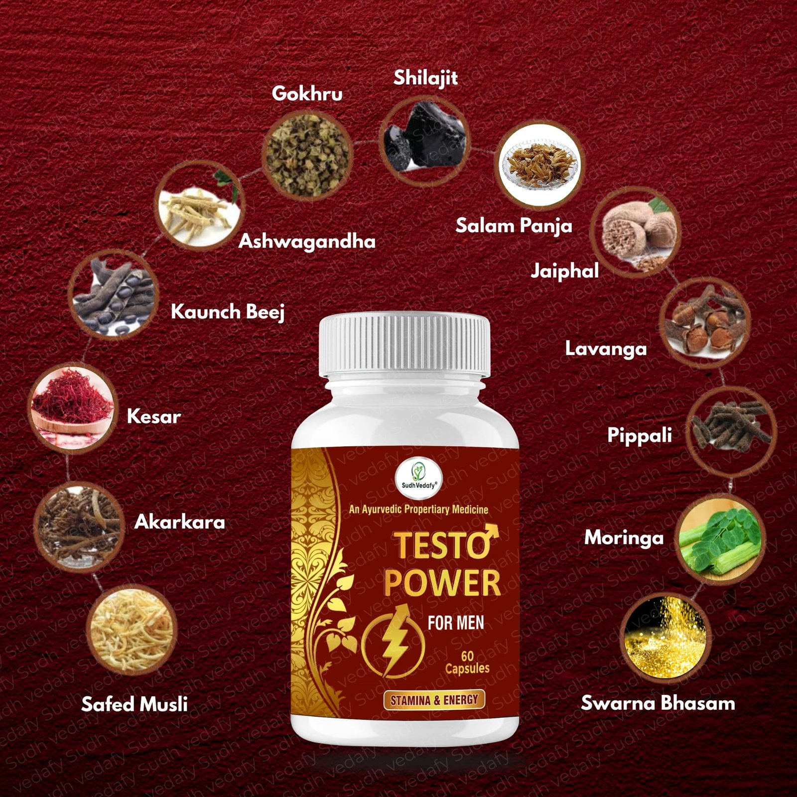 Sudh Vedafy Testo Power Capsules for Men | Ayurvedic Proprietary Medicine | Stamina & Energy Support | Agnitapi Purified | AYUSH Approved | 60 Capsules