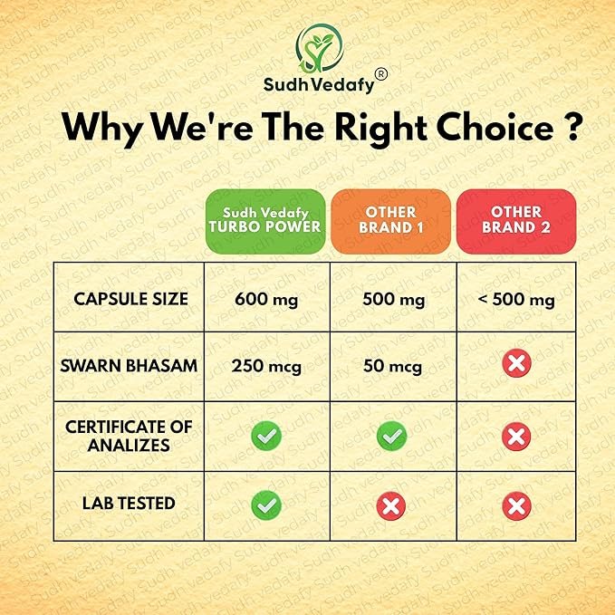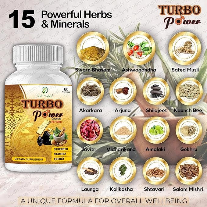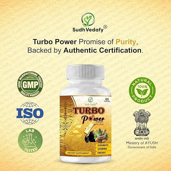 - Sudh Vedafy Turbo Power Capsules are specially formulated for men using traditional Ayurvedic ingredients, enriched with pure gold to support overall strength and performance.